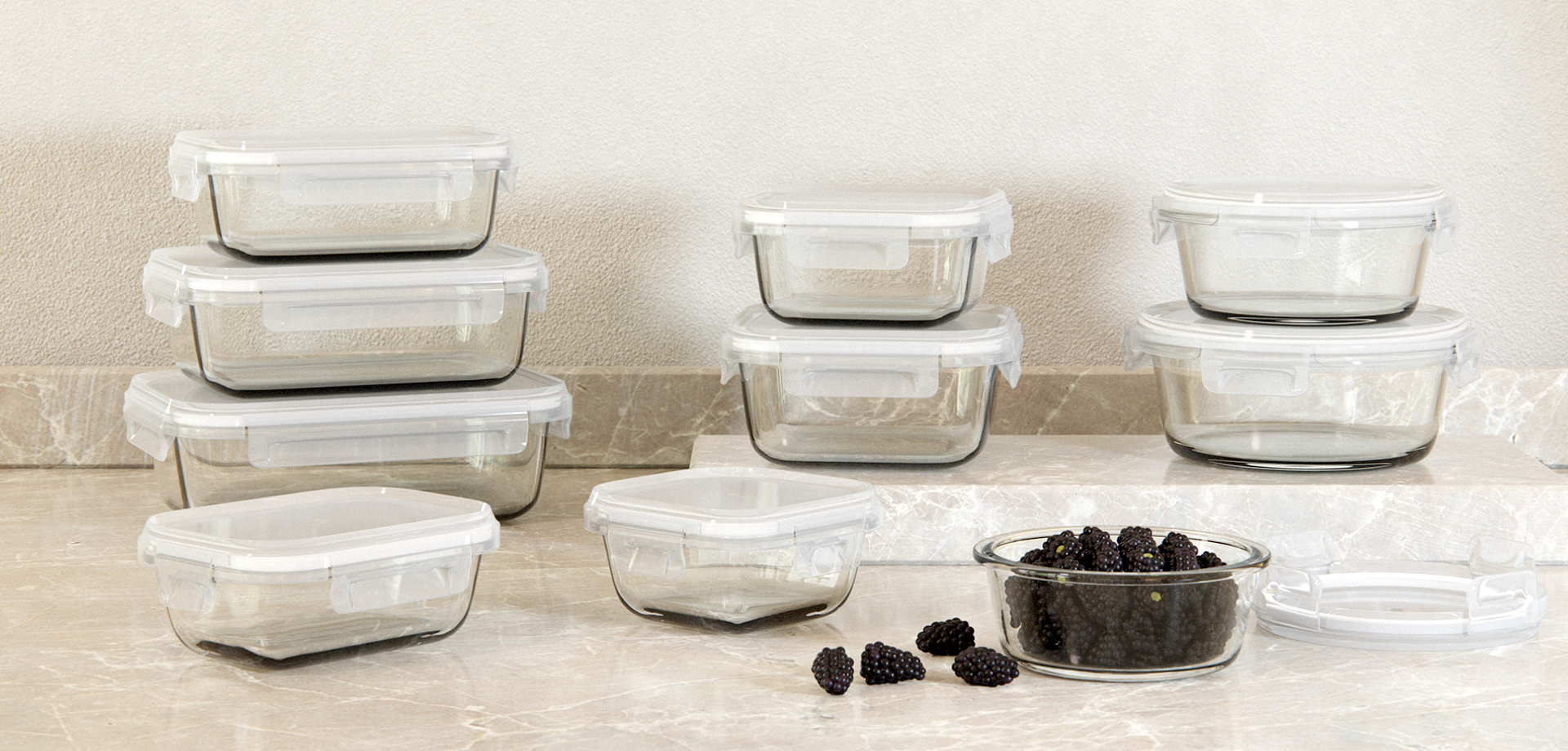 As caixas em vidro herméticas Cook and Care da Jomafe trazem até si versatilidade. Conserve, armazene e cozinhe com as caixas em vidro Herméticas. Prepare os pratos para várias refeições e armazene-os no congelador, para mais tarde cozinhar ou aquecer no forno ou micro-ondas. Os recipientes em vidro da Jomafe estão preparados para temperaturas altas e baixas, dos 400º aos -20º, sem partir. Tire o máximo partido dos quatro tamanhos Cook and Care - caixa de vidro retangular 180 ml e caixa de vidro quadrada de 320 ml, 500 ml a 800 ml. Conserve, organize ou transporte consigo as suas refeições ou sobras e torne o seu dia-a-dia mais fácil, prático e com o mínimo de desperdício alimentar.